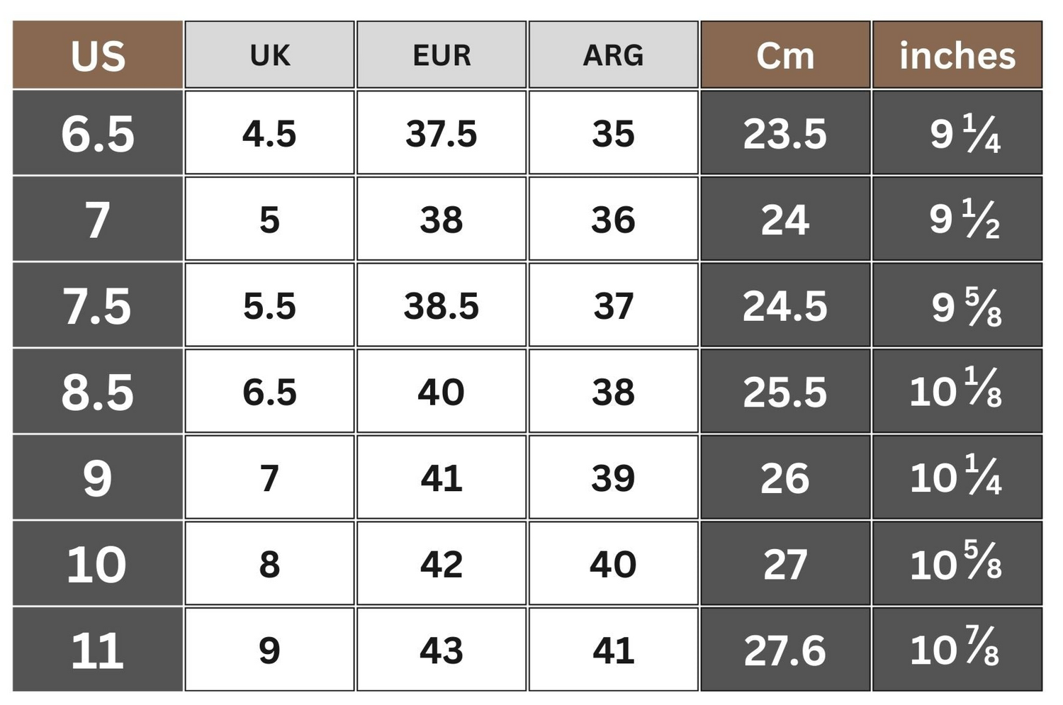 Nuestras zapatillas están hechas con un calce estándar para la mayoría de las formas de pie. Para que puedas elegir el talle correcto con total seguridad, armamos esta guía de talles simple y confiable. La mejor forma y la más precisa de saber tu talle es midiendo el largo de tu pie. Una vez que tengas esa medida, la comparás con nuestra tabla de talles para encontrar el calce perfecto para vos.